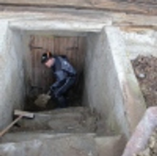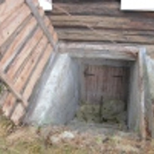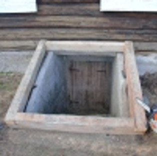 Vi har laget ny kjellerlem! Den gamle var både råtten og hullete og direkte farlig for dem som måtte tulle seg bort på den. Da vi åpnet lemmen, fant vi en trapp full av leirjord, isolasjonsmateriale og glassbiter. Ikke særlig hyggelig, og det var bare å finne frem spaden for å få gravd ut det verste for å komme frem til døra. Materialene som vi brukte til den nye kjellerlemmen er fra det gamle inngangspartiet på hovedhuset, det som ble fjernet for et par uker siden (se tidligere innlegg). Dermed har den en fin gammel patina, og passer til den tjærebredde Østerdalsstua vår.