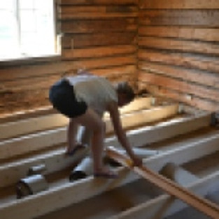 Stua har blitt fullstendig strippet, både på gulv og vegger. En vegg blir yttervegg, og må isoleres og paneles på nytt, mens de andre veggene skal få beholde tømmeret. På grunn av en brannskade i tømmeret (pipebrann?) må det også paneles noe rundt døra og det tidligere ildstedet. Vi har valgt østerdalspanel fra lokale Tela Sag. Dette panelet har en bred overligger med smalere underligger, noe vi ble veldig fornøyd med. Foreløpig er det som skal være yttervegg ferdig panelt. Etter å ha fått ideer fra andre, tilsvarende prosjekter, ble det frest ut spor i tømmeret der panelveggen og tømmerveggen danner et hjørne. Her er prosessen: