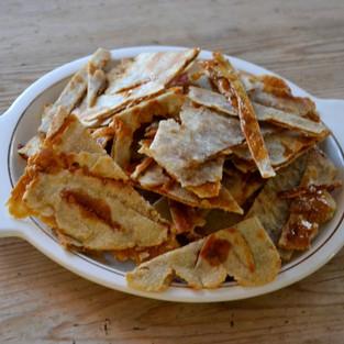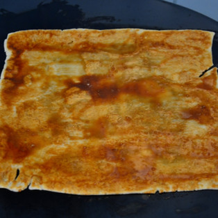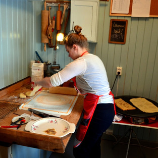 Anbefaling fra vår tante Klara, var å stille inn takka på 2. Takker er imidlertid forskjellige og vår takke fungerte ikke på 2. Det virket nærmest som om deigen smeltet og gikk i oppløsning heller enn å stekes til et tynt brød. Vi skrudde opp varmen til fire, kjevlet firkantete leiver og fikk etter hvert dreis på det hele. Og smaken, den ble i alle fall helt fortreffelig!
